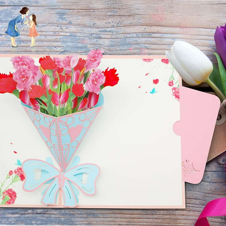 Mother’s Day Card Carnation Bouquet 3D Pop Up Mothers Day Cards